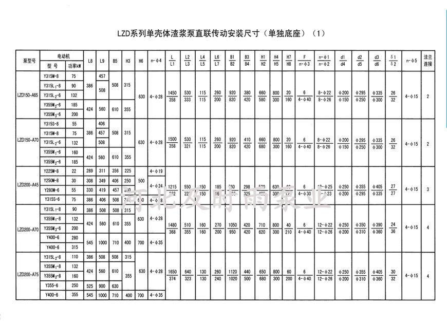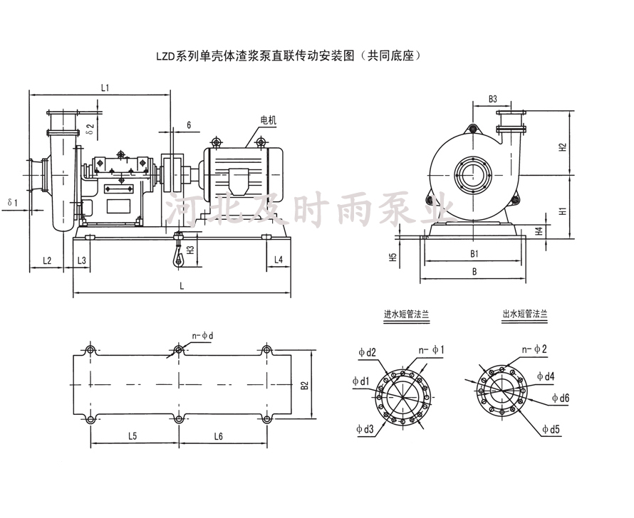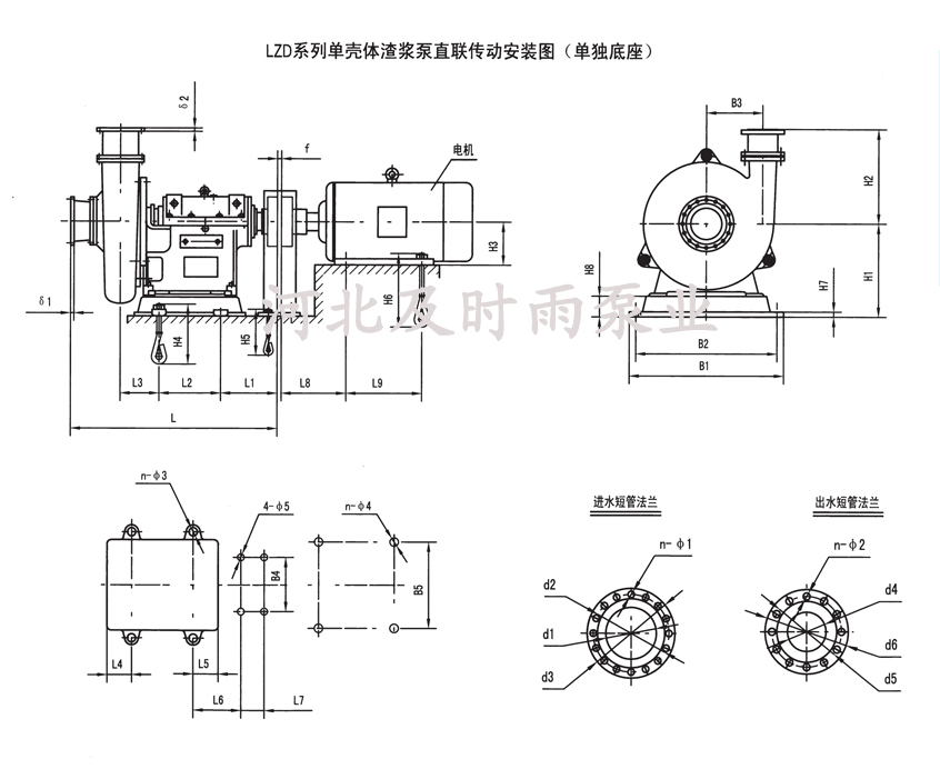 LZD單殼脫硫渣漿泵直聯傳動安裝圖-河北及時雨泵業有限公司